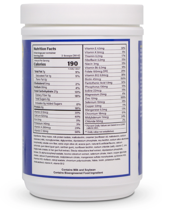 - 9g chất đạm, 5g chất xơ nhuận trường, giảm cholesterol, 190 calo, 26 Vitamin & chất, 520mg Canxi giúp phát triển chiều cao tối đa, phòng chống trượt xương, Có bổ sung enzyme Lactase, không sợ đau bụng tiêu chảy, khi pha SureMeal™ Zero Sugar Original với sữa tươi, hương vani, Tinh chất sữa non Colostrum : tăng sức đề kháng, Dầu ô liu
